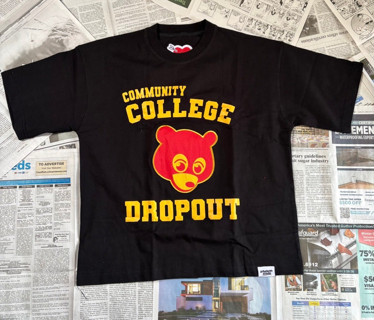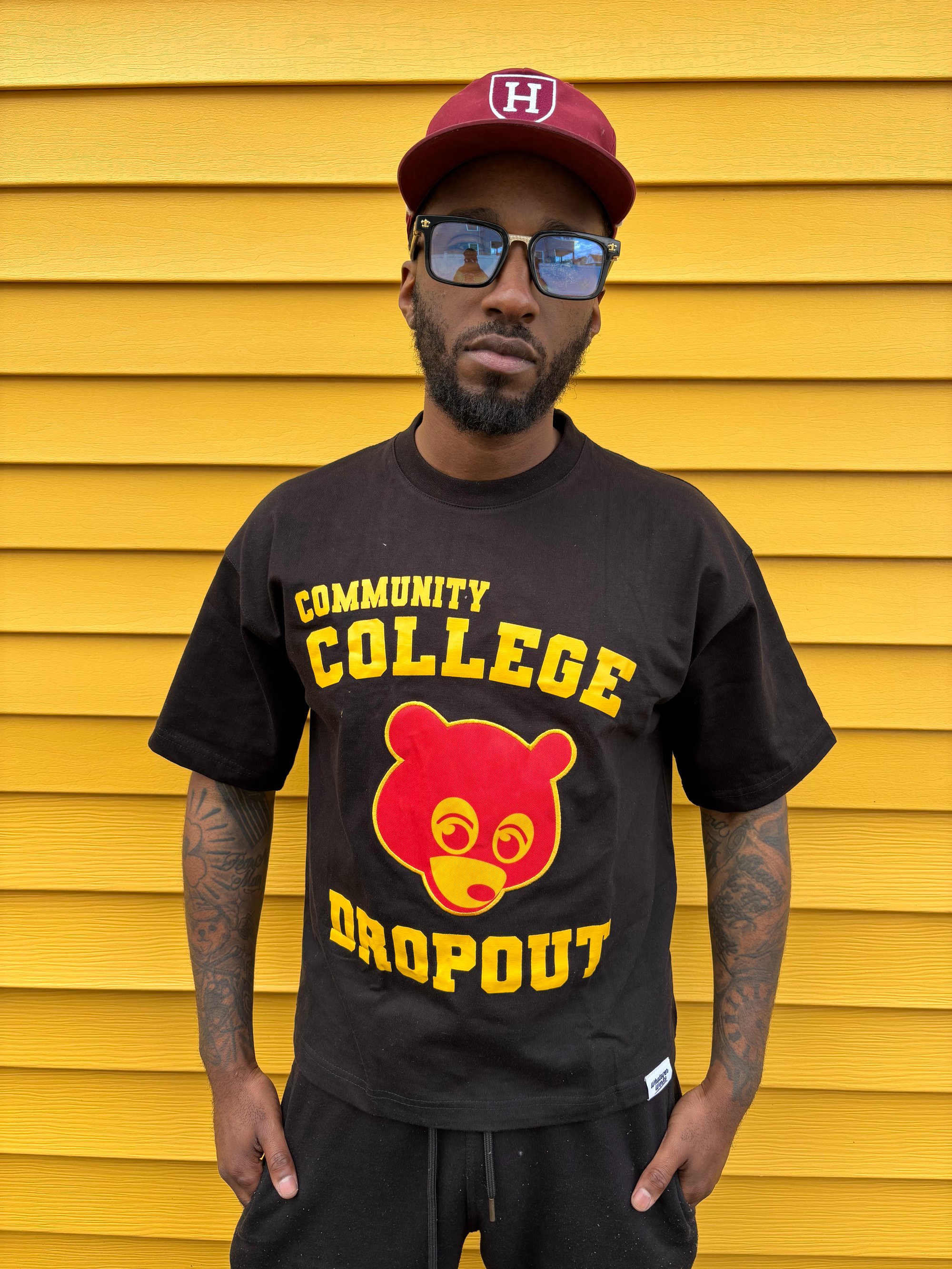 Community College Dropout Collab with Whatever Works And HeartBreak Culprit. The Tee is promo for Comedian Harvards Eye Album "Community College Dropout" Which is available now on all streaming platforms.